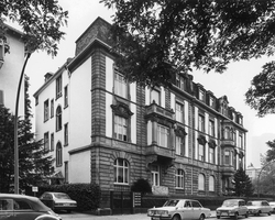 Mietshaus von 1902 nach Entwurf von J. W. Proesler mit neobarocker Fassade unter Mansarddach; Gliederung durch Lisenen und Erker aus Sandstein, skulptierte Fensterverdachungen.