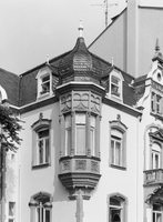Wohnhaus der Neurenaissance von 1904 nach Entwurf von W. Müller mit zwei , der Ecksituation entsprechenden Schaufassaden. Axiale Betonung durch übergiebelte Risalite sowie überkuppelten Eckerker auf polygonalem Grundriss; urspr. Einfriedung.