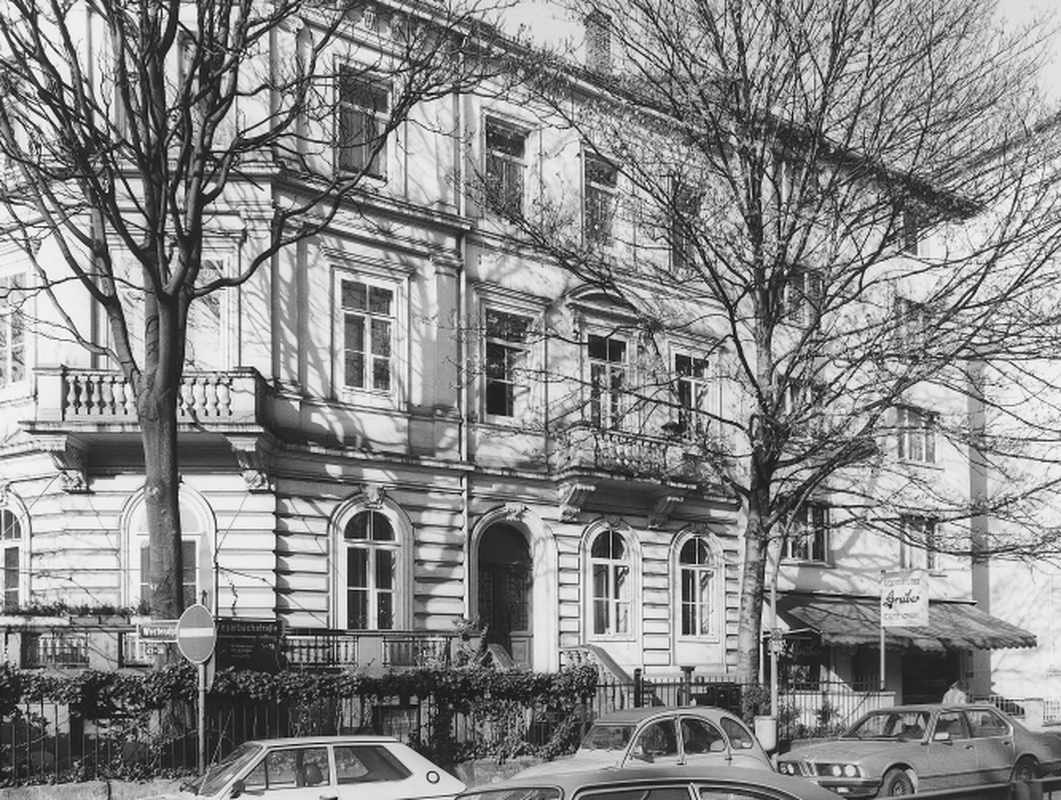 Mietshaus in Formen des Spätklassizismus von 1879; Eckfassade durch Pilastergliederung und Balkon betont.