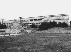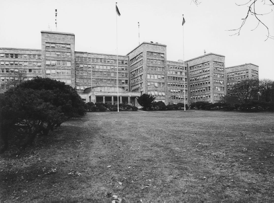 Verwaltungsgebäude mit Casino und Labortrakt von 1928-31 nach Entwurf von H. Poelzig als travertinverkleidete Stahlkonstruktion auf kreisbogenförmigem Grundriss mit sechs radial angeordneten Querflügeln und separatem Casinogebäude Im Kreiszentrum. Axiale Eingangshalle sowie weitgehend erhaltene orig Ausstattung, u. a. Paternoster-Aufzugsanlage.