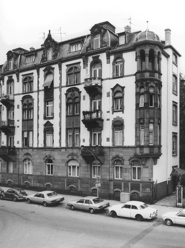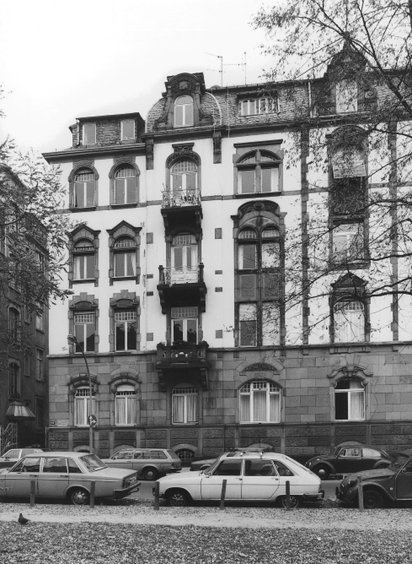Doppelmietshaus des Neobarock von 1903 nach Entwurf von P. Junior & A. Metzger mit reich gegliederter Werksteinfassade und Balkons an den Risaliten; orig. Fenster u. Balkongitter.