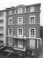 Mietshaus des Spätklassizismus von 1863. Fassade mit reliefierten Brüstungsfeldern durch übergiebelten Risalit zentriert.