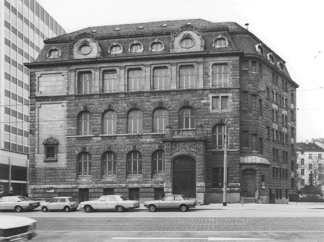 Ehemaliges Geschäftshaus des Frankfurter Hypothesen-Kreditvereins von 1904/05 nach Entwurf von F. Sander auf trapezoidem Grundriss. Repräsentative Fassade des Neobarock durch charakteristisches Mansarddach sowie asymmetrischen Portalvorbau mit reliefierter Sturzzone akzentuiert; orig. Treppenhaus u. halbkreisförmiger Lichthof.