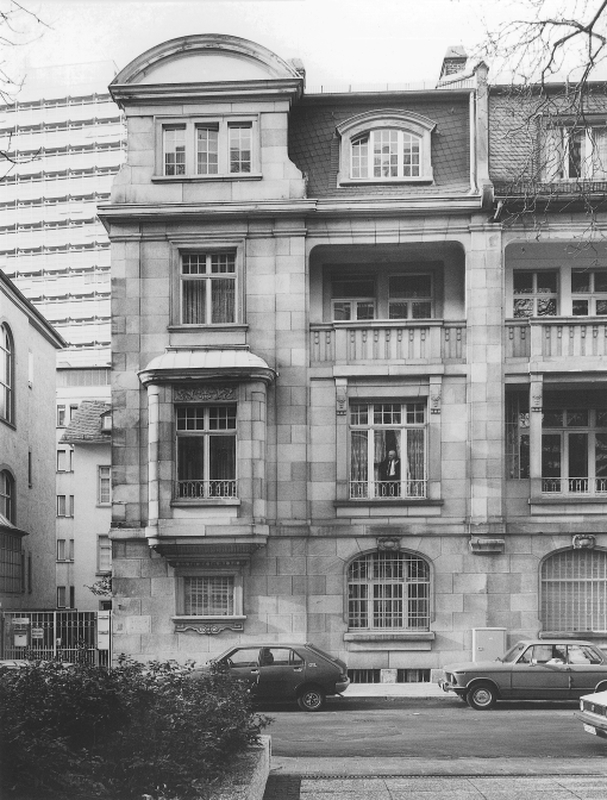 Mietshaus des Neoklassizismus von 1911 nach Entwurf von F. Lönholdt in Sandsteingliederung mit übergiebeltem Seitenrisalit und Erker; orig. Balkongitter.