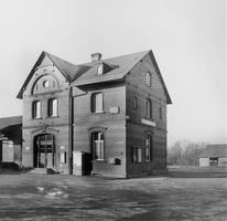 Bahnhofsempfangsgebäude von 1896 auf der Ortsseite östlich der Strecke: auf T-förmigem Grundriss aus gelbem Backstein mit Gliederung durch rote Zierklinker. Giebelfronten mit Blendbogen und eisernen Zugankern als Initialen. Portal zum Ort mit Schlusssteinrelief des Flügelrades. Südlich hölzerner Güterschuppen (durch Neubau ersetzt). Ortsgeschichtliche und baukünstlerische Gründe sprechen für die Erhaltung als Kulturdenkmal.