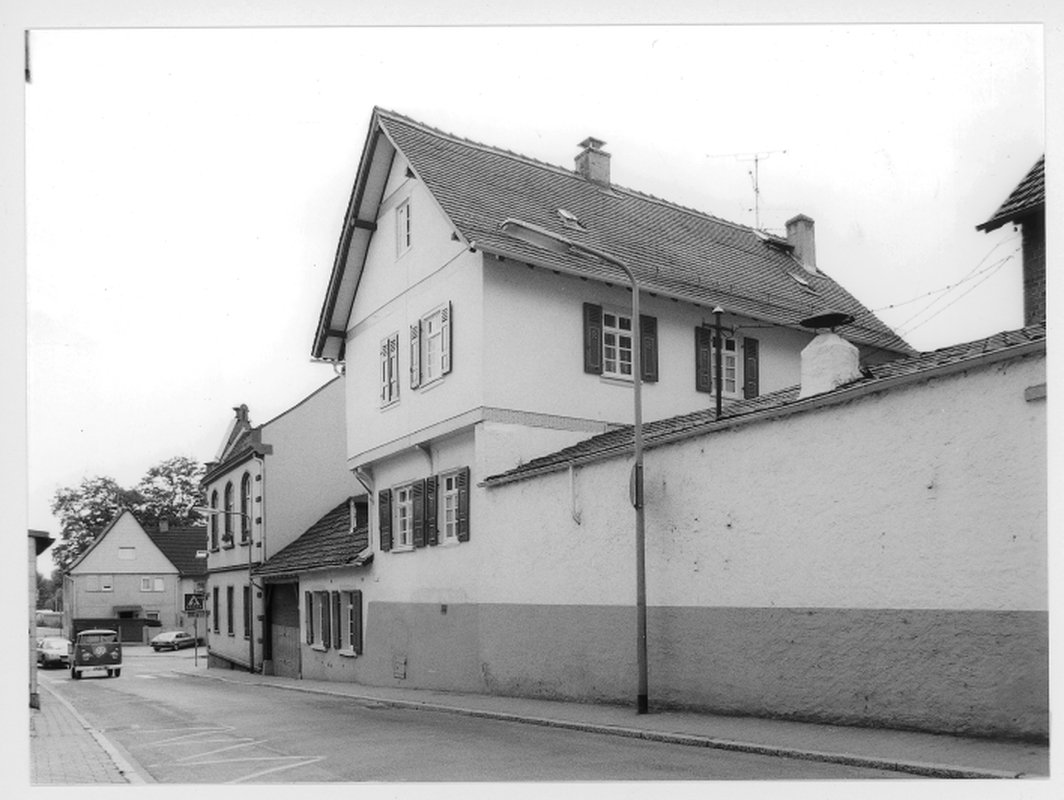 Barockes Fachwerkhaus um 1700 unter Verputz mit weit vorgekragtem Obergeschoss; seitlich Fachwerkanbau von 1780, der bis in die jüngste Zeit als Schmiede genutzt wurde.
