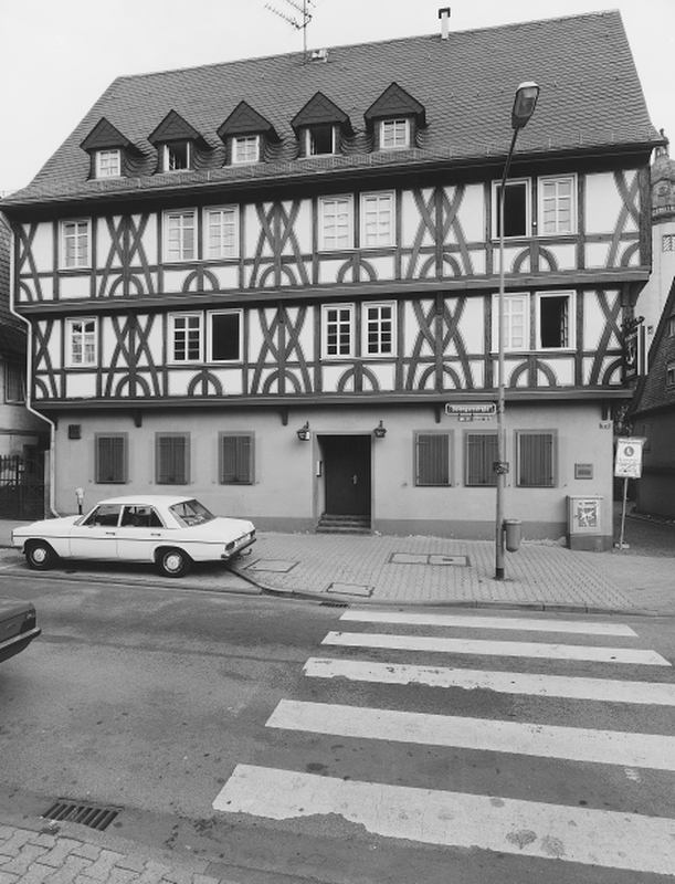 Stattliches Fachwerkhaus von 1482 aus der Wende der Spätgotik zur Renaissance mit dekorativ gebogten Streben über gemauertem Erdgeschoss (1978 weitgehend rekonstruiert).