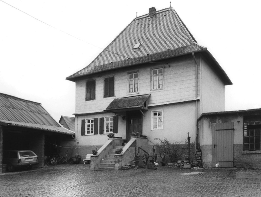 Älteste Hofreite Kalbachs aus Herrenhaus und Zehntscheune von ca. 1663 in Fachwerkkonstruktion - 1302 aus der Teilung eines Dinghofes hervorgegangen, ab 1446 Mainzer Domherrengut, dann domkapitularischer Präsenzhof; Pumpenbrunnen im Hof.
