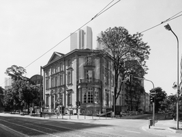Wohnhaus von 1871 in Formen des Spätklassizismus mit übergiebeltem Axialrisalit und polygonalem Eckerker; im Innern stark verändert.