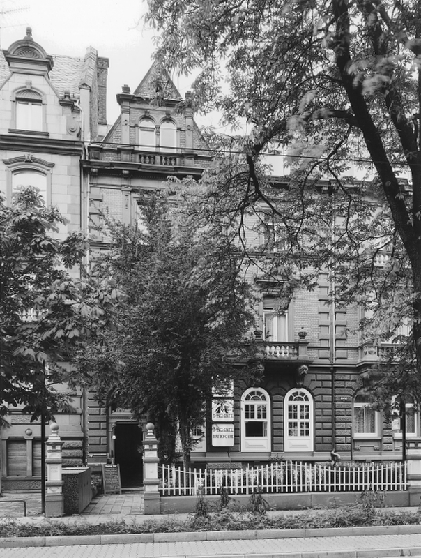 Mietshaus der Neurenaissance von 1889 nach Entwurf von W. Decker mit Verblendsteinfassade und Sandsteingliederung.