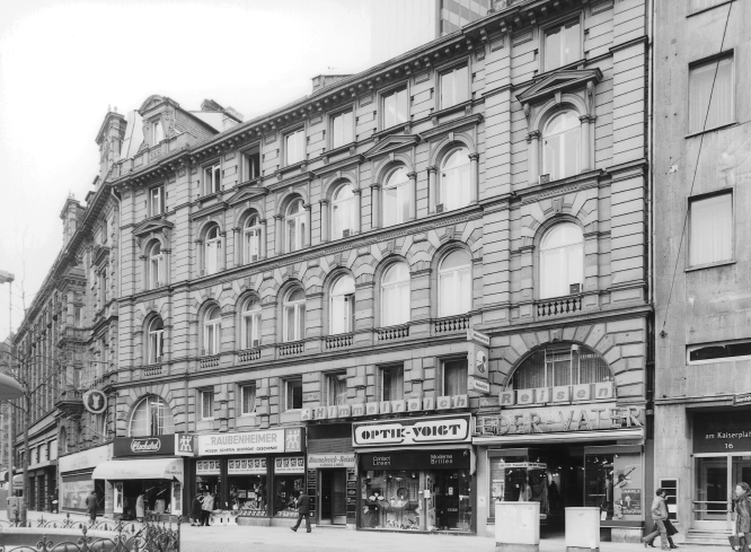 Geschäftshäuser der Neurenaissance von 1874/75 nach Entwurf von A. Hänle. Gemeinsame Steinfassade mit übergiebelten Eckrisaliten und nobler Gliederung.