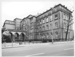 Späthistoristisches Museumsgebäude für die "Senckenbergische naturforschende Gesellschaft", 1904-07 errichtet nach Entwurf von L. Neher in der Tradition barocken Schlossbaus. Repräsentative Gesamtfront durch Verbindung mit den Flügelbauten des "Physikalischen Vereins" und der "Senckenbergischen Bibliothek" in Gestalt offener Arkaden. Figurenverzierter Giebel. Statue des Saturn mit Sanduhr und Sense (Kopie der Kuppelfigur von Senckenbergs barockem Anatomiegebäude).