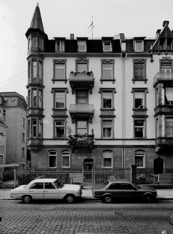 Mietshausgruppe in Formen der Neurenaissance von 1907 nach Entwurf von G. Weigel. Eckbetonung durch Türmchen sowie Erkerrisalit unter Ziergiebel; zentrale Balkongruppe an Danneckerstraße 8; orig. Balkongitter u. Einfriedung.