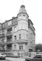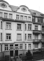 Symmetrisch konzipierte Mietshausgruppe des Neoklassizismus mit barockisierender Reliefornamentik von 1911/12 nach Entwurf von L. Maul. Eckbetonende, überkuppelte Polygonalerker sowie zentrierendes Giebel- und Portalpaar zwischen flankierenden Erkerrisaliten; orig. Balkongitter und Einfriedung.