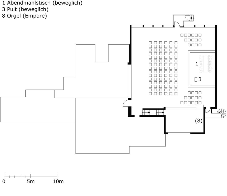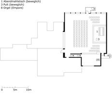 An einer östlichen Stichstraße des Gerhart-Hauptmann-Rings tritt das ehem. Deutsch-Reformierte Zentrum inmitten der mehrgeschossig aufragenden Wohnbebauung zurück. Das kirchliche Ensemble aus gestaffelten flachgedeckten Kuben wird durch seine Oberflächen gegliedert: die ehem. Wohnräume mit rottonigen Hölzern verkleidet, die ehem. Gemeinderäume weiß geschlämmt und der ehem. Gottesdienstraum als höchster Punkt des Baus in grauer französischer Schieferdeckung. Während sich die Wohn- und Gemeinderäume nach Süden mit großen Fensterflächen öffnen, wird der Schieferkubus durch Lamellen strukturiert. Nur nach Norden belichtet ihn eine wandhohe Fensterfläche. Plastisch ausgeformte Betonmauern fassen die Grünfläche des Zentrums ein. Im Inneren erschließt eine Treppe das Obergeschoss mit dem ehem. Gottesdienstraum. Überfangen von einer Betonkassettendecke, wird der Raum durch ein Betonraster mit Holzakustikelementen geprägt. Nach Norden öffnet sich eine wandhohe Fensterfläche. Im Osten ist noch die um zwei Stufen erhöhte Bühne als das ehem. liturgische Zentrum ablesbar.