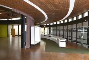 Im Inneren ist neben der Beleuchtungstechnik und dem Stirnholzboden vor allem das hochovale Mosaik der runden Eingangshalle zu nennen, das von dem nicht unbedeutenden Hattersheimer Künstler Gerhard Matzat geschaffen wurde. Von Matzat stammt auch der Entwurf des Hessischen Landeswappens von 1949.