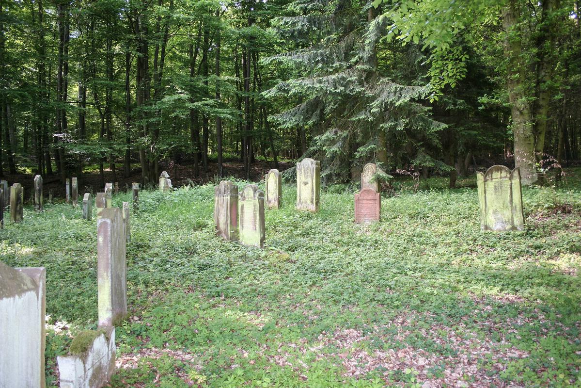Rechteckige Anlage südwestlich des Ortes am Waldrand angelegt in der ersten Hälfte des 19. Jahrhunderts. 18 Sandsteingrabsteine aus der Zeit von 1849 bis 1863 sowie 69 Grabsteine ab 1863 erhalten. 1877/78 Erweiterung. Der Friedhof war auch Begräbnisstätte für die jüdischen Gemeinden in Altwiedermus, Langen-Bergheim und Himbach und umfasst eine Fläche von 18,44 ar.
