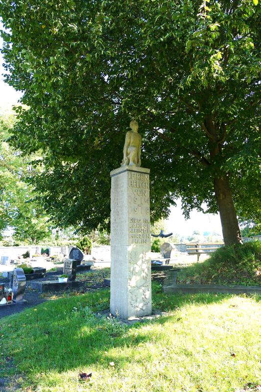 Auf dem Friedhof Denkmal für die Gefallenen des Ersten Weltkrieges in Form einer Stele mit knieender Männergestalt in expressionistischer Gestaltung der 1920er-Jahre. Frontseitig in erhabenen Buchstaben die Inschrift: IHREN HELDEN VON 1914-1918. DIE DANKBARE GEMEINDE HIRZENHAIN. Darunter Eichenlaub. An den anderen Seiten sind die Namen der Gefallenen eingraviert.