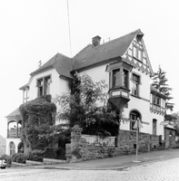 Geschlossen erhaltene Anlage des späten Historismus um 1900 mit bossiertem Sockel und interessanter wehrhafter Ummauerung. Im Erdgeschoß korbbogige Fenster mit profilierter Fensterteilung und aufwendigen Jugendstilfenstern. Im Obergeschoß neobarockes Fachwerk; polygonaler Erker, vom Steinernen Haus in Büdingen abzuleiten. Die komplett erhaltene Anlage ist die qualitätvollste dieser Epoche am Ort.