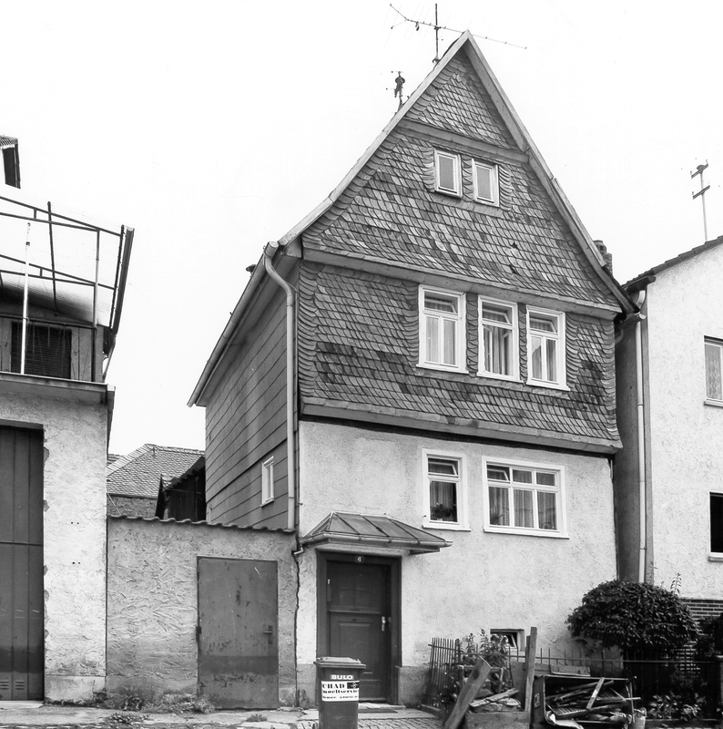 Fachwerkwohnhaus mit hohem Hallengeschoß und eingeschobenem Zwischengeschoß. Im Obergeschoß starke Übersetzung, verschiefert. Auf der Schwelle des 1. Obergeschosses folgende Inschrift: "CONRAT STORCK, BAUHERR OB DIRS SCHWER WIRDT MIT DEINER NAHRUNG UND ACKERBAUW DAS LAS DICH NICHT VERDRISSEN DAN GOTT WIRD DICH NICHT VEBLASSEN. SYR KAPITEL RP. 7 HANS WEIGEL 1611". K