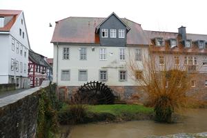 1537 ist an dieser Stelle eine Vorgängermühle nachweisbar. Heutiger Bau errichtet 1804. An der Ecke Inschriftsteine mit Datum 1804. Über dem Portal einfache rechteckige Platte mit Inschrift verschiedener Namen, dort ebenfalls Datum 1804; darüber Stadtwappen. 2016 restauriert.