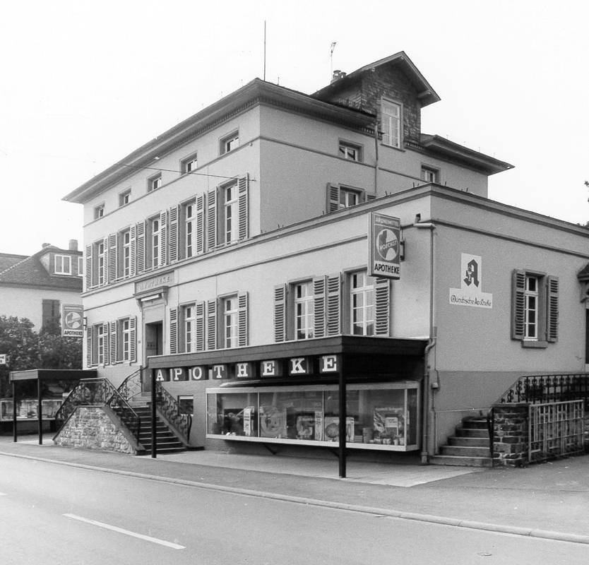 Interessanter spätklassizistischer Wohnbau in Kubusform mit nach einer Seite ausscherendem Altan, zweiläufiger Freitreppe und Mezzaningeschoß. Über dem Eingang alte Inschrift "Apotheke". Der Bau ist für die Entwicklungsgeschichte Niddas interessant, da er einen der ersten großen Wohnbauten außerhalb des Stadtkerns im 19. Jh. darstellt. Erbaut um 1840.