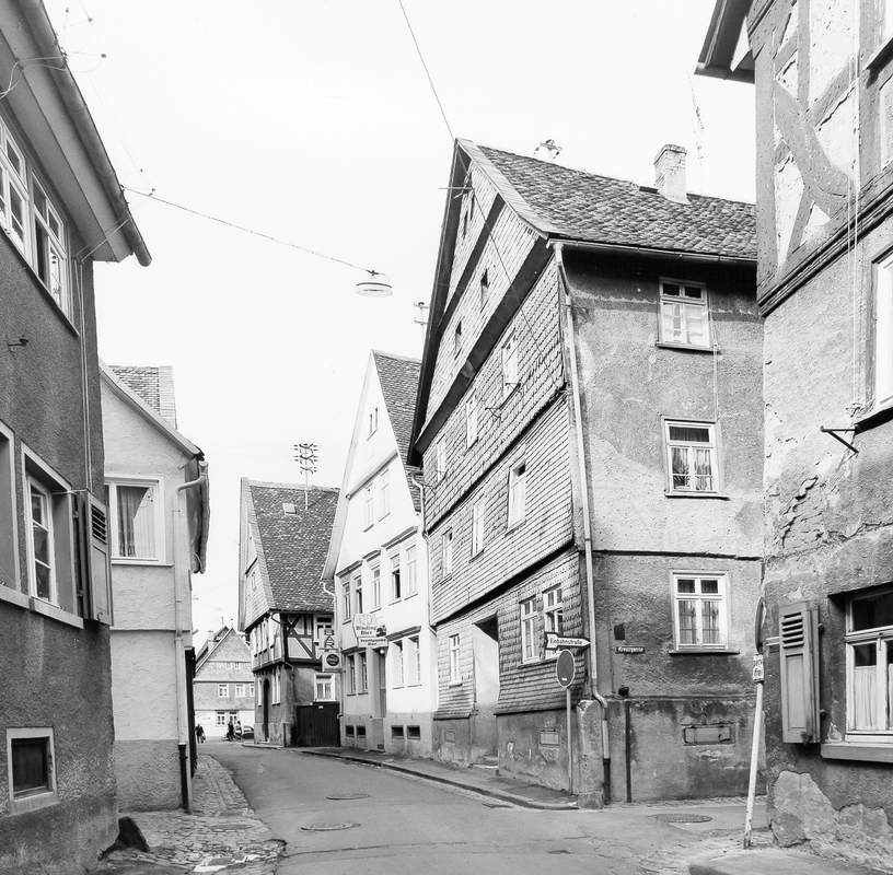Großer, mehrfach übersetzter Fachwerkbau mit zentralem innenliegenden Eingang und mehrstufiger Treppe. Der Fachwerkbau verputzt bzw. holzverschindelt, im Giebel verschiefert. An manchen Stellen karniesprofilierte Schwelle sichtbar. Der Bau ist ungestört was an den Fensterformen ablesbar ist. Reiches Zierfachwerk des 17. Jhs. zu erwarten. Der Bau wirkt stark in den Straßenraum.