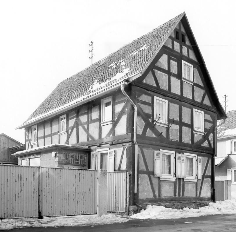 Guter Fachwerkbau, Rest einer Hofreite. Fachwerk z. T. erneuert; alte Eckständer und Schwellen im Erdgeschoß erhalten, urwüchsige Bauform. Im Obergeschoß Schwelleninschrift "ANNO 1676 (oder 1662)". Schöne geschuppte Füllhölzer zwischen den Balken, geschuppte Eckstäbe mit Diamantquadern; stark durchgebogene Eckverstrebungen. Im Obergeschoß alte kleine Fensterteilung mit Setzholz.