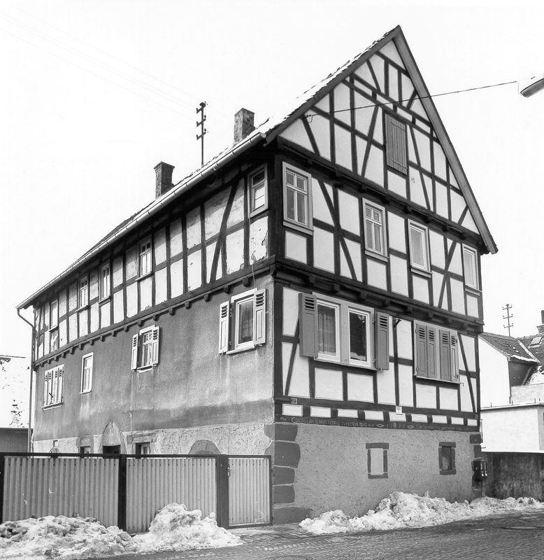 Großer Burgmannenhof des 16. Jhs. Massives Bruchsteinuntergeschoß, darauf Schwelle mit lat. Inschrift und Dat. 1577. Gut erhaltenes Fachwerk des späten 16. Jhs. Im massiven Erdgeschoßsockel auf der Traufseite mehrere Öffnungen, rundbogig bzw. angespitzt mit Inschrift "JOHANNES CHELIUS WPF ANNO DOMINI 1576". Kulturdenkmal einerseits wegen seiner baukünstlerischen Bedeutung und seiner Wirkung im Straßenbild, andererseits auch als eine für die Ortsgeschichte bedeutende, herrschaftliche Hofanlage.