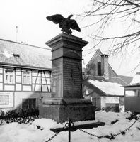 Graue Granitstele mit bronzenem Adler auf Weltkugel. Inschrift: „Gott war mit uns. Ihm sei die Ehre". Mit eisernem Kreuz. im Jahre 1870/71 kämpften zur Ehre des Vaterlandes aus Ulfa...", es folgen die Namen. „Den Gefallenen zum Gedächtnis, den Lebenden zur Anerkennung und den künftigen Geschlechtern zur Nacheiferung". Sockelinschrift: „Aus Dankbarkeit gestiftet vom Kriegerverein und der Gemeinde".