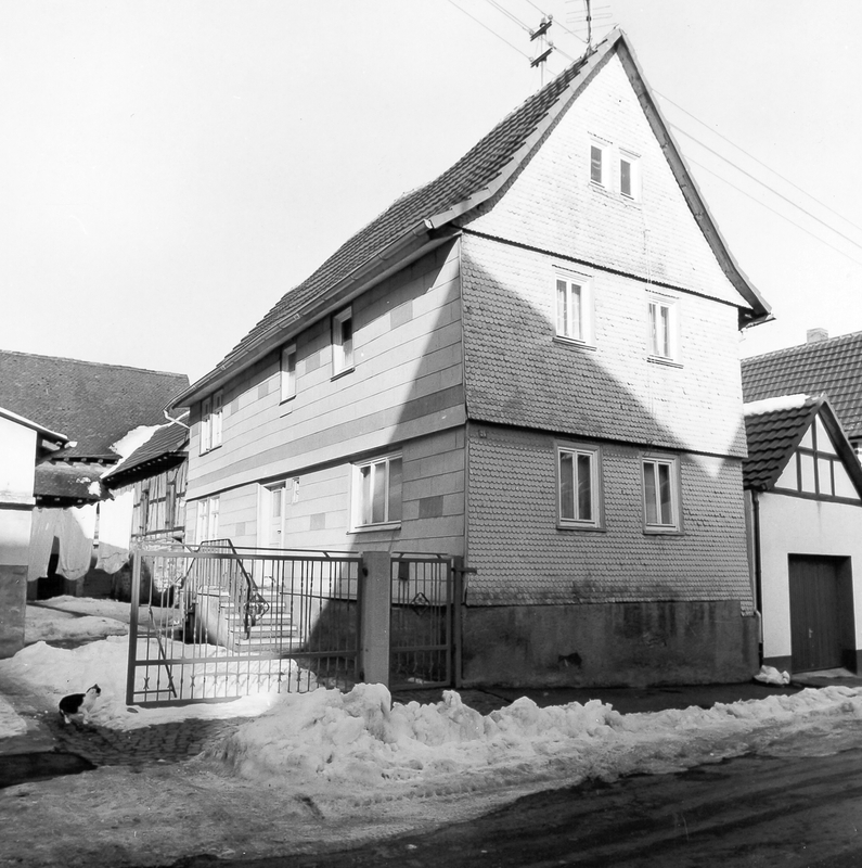 Barocke Hakenhofreite, gut erhalten. Das Wohnhaus ganz verschindelt, teils mit Holz, teils mit Asbestzement. Alte Fensterteilungen vorhanden. An Hand der Proportionen und Geschoßüberstände ist eine Erbauungszeit Ende des 17. Jhs. anzunehmen. Gutes Schmuckfachwerk zu erwarten.