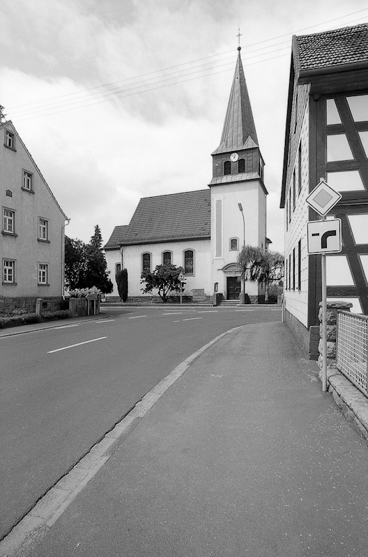Die evangelische Kirche von Großenmoor ist ein schlichter Bau in neobarocken Formen aus den Jahren 1923-1926. An das rechteckige Schiff mit drei Achsen flacher Segmentbogenfenster schließt sich ein eingezogener Chorraum mit geradem Schluss an. Der an der Südostecke einspringende Turm hat ein verschiefertes Fachwerk - Obergeschoss und wird von einem achtseitigen Spitzhelm bekrönt. An der Südseite des Turmes liegt ein Portal mit Segmentbogenverdachung und der Türsturzinschrift "Selig sind, die Gottes Wort hören und befolgen". Der Innenraum weist eine Spiegeldecke auf; der Altarraum ist durch einen runden Chorbogen vom Schiff getrennt. Die Kirche liegt als "point de vue" am Ende der Talstraße, bevor diese einen rechtwinkligen Knick macht. Sie fungiert somit als optischer Abschluss des Straßenzuges Talstr. 10-22 bzw. 17-29.