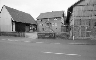 Dreiseitig umschlossene Hofreite, die sich U - förmig zur Fuldaer Straße öffnet. Das traufenständige, gut proportionierte Fachwerkwohnhaus bildet den hinteren Hofabschluss; es ist zweistöckig und erhebt sich über einem geschosshohen, früher als Stall, später als Keller genutzten Quadersockel. Die Fassaden sind bis auf die linke Giebelseite verschindelt; dort zeigt sich ein regelmäßiges Fachwerkgefüge aus dem Anfang des 19. Jahrhunderts mit Mannfiguren zur Aussteifung der Eckständer und profilierter Gebälkzone. Eine hohe zweiläufige Freitreppe führt auf den Hauseingang zu. Der seitlich offene hölzerne Vorbau mit eigenem kleinem Satteldach stammt vermutlich aus dem Anfang des 20. Jahrhunderts. Links vom Wohnhaus steht eine Fachwerkscheune mit weitem Dachüberhang, die im Kern zeitgleich mit dem Wohnhaus enstanden sein dürfte. Sie ist noch mit den im Kreisgebiet inzwischen rar gewordenen alten S - Pfannen gedeckt. Rechts vom Wohnhaus erstreckt sich ein jüngeres Stall- und Scheunengebäude, das wohl in der 2. Hälfte des 19. Jahrhunderts errichtet wurde. Die Hofreite zeigt eine historisch gewachsene, weitgehend intakte Anlage, bei der sich zudem ein altes Hofpflaster aus Bruchsteinen erhalten hat.