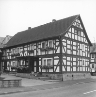 Giebelständiges zweistöckiges Fachwerkhaus auf mittelhohem teilunterkellertem Bruchsteinsockel. Reiches Fachwerkgefüge aus der Zeit um 1800 mit Mannfiguren an Bund- und Eckständern, zweifacher Verriegelung, umlaufendem Geschossüberstand und profilierter Gebälkzone. Die repräsentative Giebelseite sowie die Hofseite weisen eine dichte, nicht nur konstruktiv bedingte Anordnung von Wandständern auf. Zwischen einigen verdoppelten Vertikalstreben sind paarweise gesetzte Schrägriegel eingefügt. Diese als Zierform verwendete Anordnung variiert mit auf- oder abwärts verlaufenden Streben als "halber Baum" bzw. halbes Fischgrät - Ornament ein im Kreisgebiet sonst eher in ganzer Form auftretendes Motiv. In der Giebelspitze finden sich oberhalb des Kehlbalkens die inzwischen geschlossenen Fluglöcher des ehemaligen Taubenschlags. Der Hauseingang und der Ern wurden später etwas angehoben, so dass die jetzigen Treppenstufen auf dem ursprünglich durchlaufenden Vorpflaster aufsitzen. Von der für die Mitte des 19. Jahrhunderts in einer Katasterkarte belegten Winkelhofanlage hat sich nur das später um eine Zone erweiterte Wohnhaus erhalten. Die alten Betriebsgebäude wurden durch eine große Stallscheune ersetzt. Trotz einiger späterer Veränderungen wie dem Einbau großflächiger Fenster oder dem Haustür - Vorbau zeigt das Wohnhaus ein qualitätvolles Fachwerk; es steht zudem in direkter Nachbarschaft zu den Häusern Kreuzbergstr. 21 und 23 und bildet mit ihnen als Ensemble den Beginn des alten Dorfkerns.