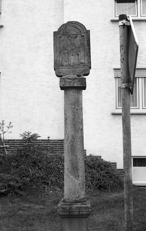 Vor dem modernen Wohnhaus Körnbacher Str. 2 aufgestellter Bildstock, bezeichnet 1740. Das schlanke, im oberen und unteren Bereich profilierte Postament trägt eine Säule mit Wulstring und ungestalteter quadratischer Abschlussplatte. Der Aufsatz auf Volutenbasis endet in einem abgesetzten Segmentbogen. Im gerahmten Bildfeld ist ein Kreuzbild dargestellt, die verwitterte Unterschrift bezeichnet das Entstehungsjahr "ANNO 1740". Auf der Rückseite befindet sich die Stifterangabe. Der barocke Bildstock ist ein illustratives Zeugnis lokaler Volksfrömmigkeit.