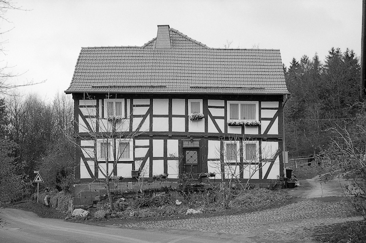 Mitten im Ort an der Durchgangsstraße des kleinen Dorfes stehendes Fachwerkhaus. Das teilweise verkleidete zweistöckige Gebäude weist eine Konstruktion mit reduzierten Mannfiguren (ohne Kopfwinkelhölzer) zur Verstrebung der Bund- und Eckständer auf, die vermutlich aus der 1. Hälfte des 19. Jahrhunderts stammt. Als Verzierung zeigen sich neben der profilierten Gebälkzone geformte Sparrenköpfe. An die rückwärtige Längsseite ist ein jüngerer Wohnwirtschaftsteil in Fachwerk und Backstein angefügt, der für Wohnzwecke ausgebaut wurde. Nebenstehend ergänzt eine ältere Scheune mit jüngerem Stallanbau die Hofanlage. Das Wohnhaus bildet mit dem gegenüber liegenden Gebäude Bergstr. 6 eine reizvolle torähnliche Situation in der Ortsmitte von Giesenhain.