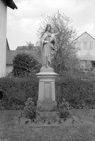 Auf einem Wiesenstück schräg gegenüber Nr. 2 an der Straße aufgestellte Vollplastik der Muttergottes, bezeichnet 1888. Das schlanke polygonale, sich konisch verjüngende Postament wird oben von einem abgeschliffenen, ehemals reich verzierten und profilierten Abschluss bedeckt. Auf der Vorderseite findet sich in einem hochrechteckigen Zierfeld die Inschrift "Hl. Maria Mutter Gottes bitte für uns u. die armen Seelen". Auf der Rückseite ist die Angabe "Gest. v. d. Eheleuten Adam Jos. Peter u. Elisabetha Kath. 1888" zu lesen. Die sorgfältig durchgebildete Madonna in einem reich drapierten Gewand trägt das Jesuskind auf ihrem linken Arm.