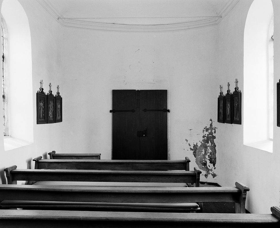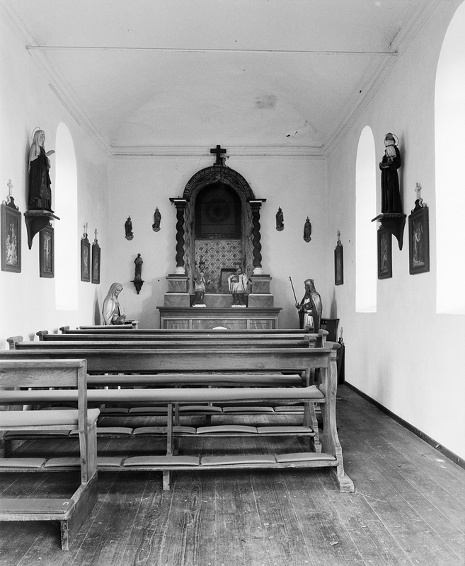 Der schlichte flachgedeckte Innenraum birgt einen barocken Altar mit zwei gedrehten korinthischen Säulen, einen Bilderzyklus sowie zahlreiche Holzskulpturen unterschiedlicher Größe, die meist dem 19. Jahrhundert entstammen.