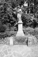 Detailliert ausgearbeitete Steinfigur auf einem schlanken polygonalen Postament. Maria ist als Himmelskönigin dargestellt, die das Jesuskind auf ihrem rechten Arm hält. Als Attribute sind neben der Krone Reichsapfel und Rosenkranz zu sehen. Vor dem vermutlich um 1900 entstandenen Bildwerk haben sich Reste der alten Einfriedung aus Steinpfosten und gusseiserner Umzäunung erhalten.