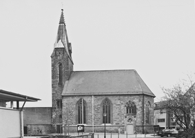 Am nördlichen Rand der Altstadt stehende evangelische Kirche, deren jetzige Erscheinung das Ergebnis mehrerer Umbauten ist. Der aus Bruchstein gefertigte Rechteckbau mit dreiseitigem Schluss bildet im Kern den Chor der alten Stiftskirche, die vermutlich zu Beginn des 16. Jahrhunderts errichtet wurde. Nach der Säkularisation 1802 wurde der Stiftsbezirk aufgelöst und ein Großteil der Kirche auf Abbruch verkauft. Aus einem Teil der Steine wurde später das Amtsgericht erbaut. Die Wiederherstellung der nur noch als Ruine existenten Anlage zur evangelischen Pfarrkirche erfolgte in den Jahren 1855-57. Dabei wurden die gotischen Fenster der Südseite mit Maßwerk ergänzt und das jetzt vermauerte Südportal mit Rundstab, Kehlen und Vierpassblenden eingesetzt. In den Jahren 1895/96 wurde der Bau leicht nach Westen erweitert und mit einem schlanken Turm mit Spitzhelm versehen. An der Südseite des Turmes wurde ein aus einem Stein gehauenes mittelalterliches Rundbogen - Doppelfenster als Spolie eingesetzt. Der Innenraum der Kirche hat eine flache Holzdecke mit Holzbögen, die auf Steinkonsolen ruht. Im Chor befindet sich an der linken Wand das Oberteil einer spätgotischen Sakramentsnische mit Dreipassbogen und Schräggitter. Seitlich hängt ein Kruzifix aus vorbarocker Zeit. Taufstein und Orgelprospekt stammen aus dem 19. Jahrhundert. Die heute weitgehend in neugotischen Formen präsente Kirche steht an ortshistorisch eminent wichtiger Stelle im Bezirk des ehemaligen Chorherrenstiftes zum Hl. Kreuz und hl. Stephan, das bereits vor dem Jahr 815 als Kloster gegründet worden war.