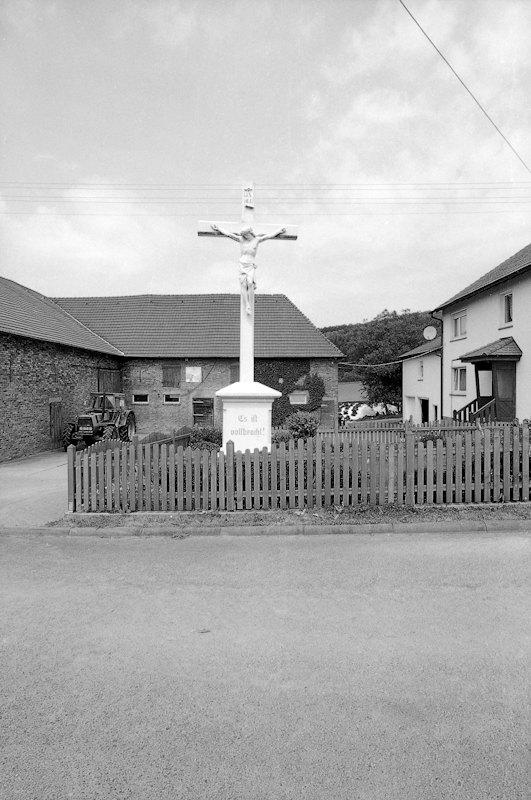 Am Ortsende des Weilers Stendorf im Vorgarten des Hofes Im Winkel 9 aufgestelltes Steinkruzifix, bezeichnet 1904. Das in auffällig hellem Stein gestaltete Kruzifix weist eine schlanke, gut durchgebildete Skulptur Christi auf. Das hohe Postament ist mit Inschriften versehen, die auch auf die Stifter Rhaban Frank und seine Frau Melanie geb. Jost hinweisen.