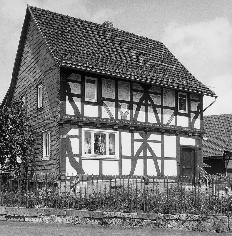 Traufständiges Wohnhaus in zwei Geschossen mit kräftigen Mannfiguren im Unter- und Obergeschoss an Eck- und Bundständern, im Obergeschoss Reste von Stippputz. Als repräsentatives Wohnhaus aus dem Jahr 1768 ist das Gebäude mit seiner ausgebildeten Schaufassade im Straßenverlauf besonders hervorgehoben und daher als Kulturdenkmal aus städtebaulichen und ortsgeschichtlichen Gründen erhaltenswert.