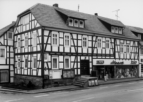 Traufständiges Wohn- und Geschäftshaus an ortsbildprägender Ecklage zur Lauchröder Straße in einem Fachwerkgefüge aus dem letzten Drittel des 19. Jhs. Der Eingang ist über eine zweiläufige Freitreppe erreichbar. Das Gebäude ist aus städtebaulichen und ortsgeschichtlichen Gründen erhaltenswert.