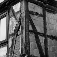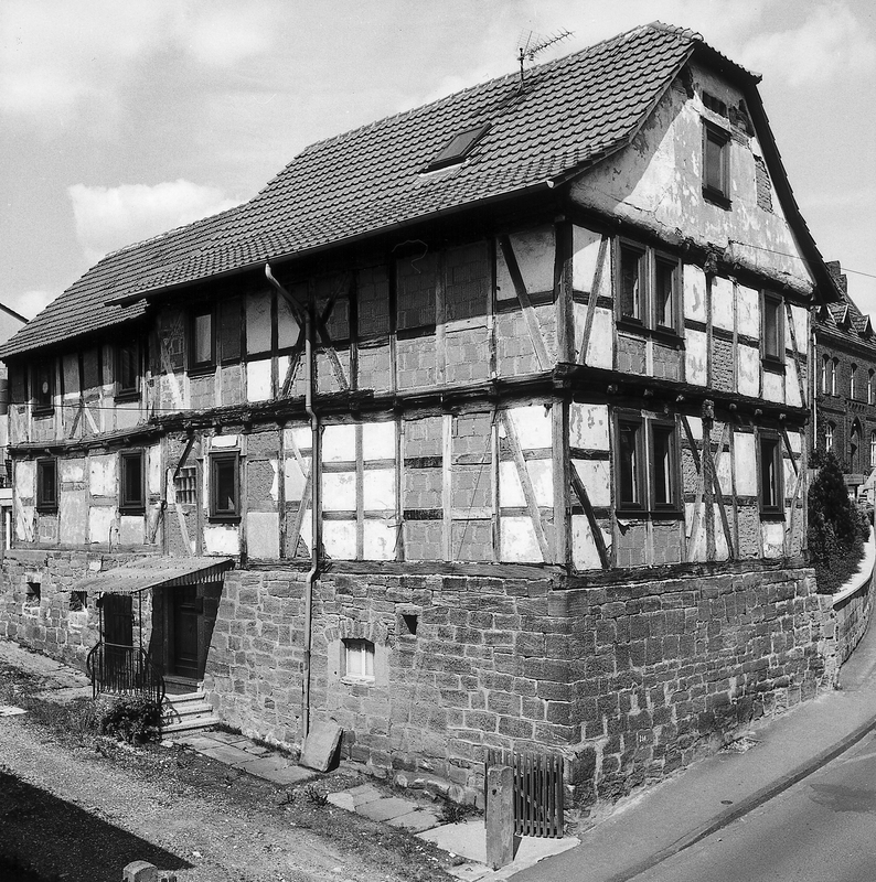 Wohnhaus mit konstruktiver Fachwerkkonfiguration um 1800 über einem Untergeschoss aus massivem Mauerwerk an ortsbildprägender Lage am Abschluss der engen Straßenführung unmittelbar vor dem Schlossbereich.