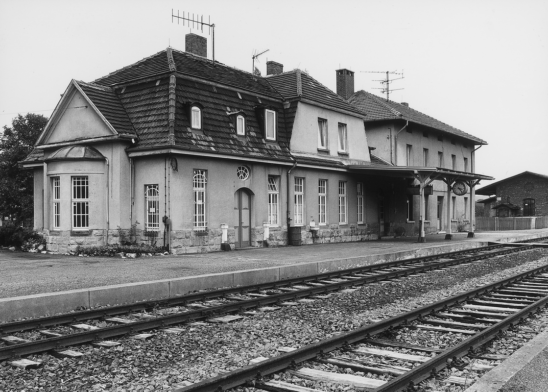 Das um 1910 erbaute Bahnhofsgebäude ehemals mit eingeschossigen Güterschuppen aus Backsteinmauerwerk bildete einen Haltepunkt der ehemaligen Friedrich-Wilhelm-Nordbahn von Eisenach nach Bebra. Als ein typisches Bahnhofsgebäude seiner Zeit in massivem Mauerverband mit abschließendem Mansarddach ist der Komplex aus geschichtlichen und städtebaulichen Gründen Kulturdenkmal.