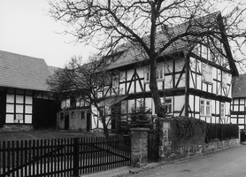 Zweiseitige Hofanlage mit einem Wohnhaus aus der zweiten Hälfte des 18. Jhs. in schlichtem Fachwerkverband: an den Eck- und Bundständern 3/4-Streben mit Brustriegel. Die angeschlossenen Stallungen mit massivem Untergeschoss und aufgesetztem Fachwerkverband; Scheune in Ständerkonstruktion. Die Wirtschaftsgebäude stammen aus dem 19. Jh.