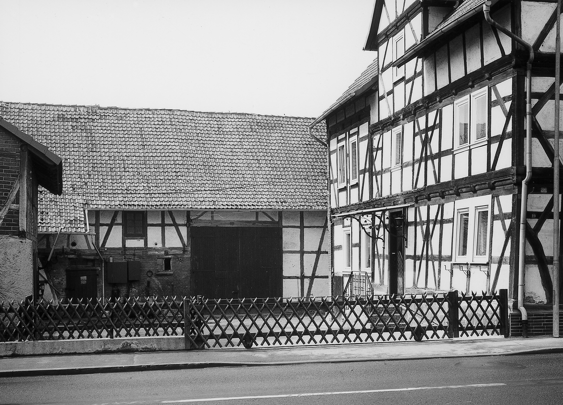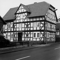 Stattliches Wohngebäude in zwei Geschossen und abschließendem Krüppelwalmdach über Kniestock aus der Zeit um 1800 in straßenbildprägendem Fachwerkgefüge. Besonders auffallend sind die kräftigen K-Streben an den Eck- und Bundständern beider Geschosse. Im hinteren Bereich jüngerer Anbau.