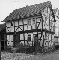 Wohnhaus und Altenteiler einer Hofanlage aus der Mitte des 18. Jhs. mit inschriftlich datiertem Torpfosten aus dem Jahr 1785. Beide Häuser wurden in zwei Geschossen über einem massiven Sockel mit lebhaftem Fachwerkraster erbaut, dessen statisches Gefüge von den Mannfiguren mit Hals- und Brustriegeln an den Eck- und Bundständern verfestigt wird.