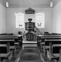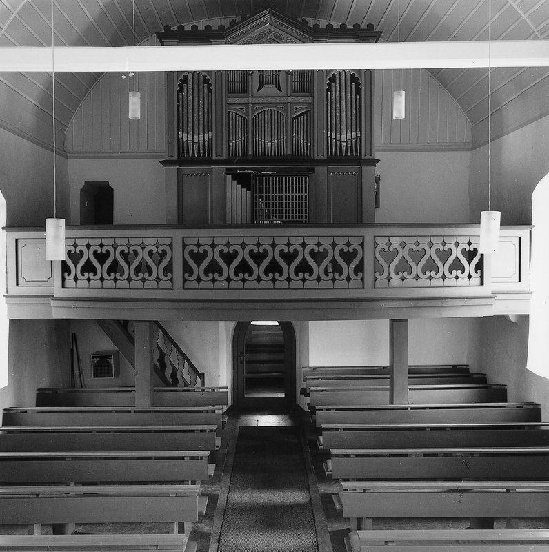 Im Inneren erhebt sich ein einfacher Saal mit abschließender Rundtonne. Die Ausstattung stammt ebenso wie der Turm aus dem Jahr 1903.