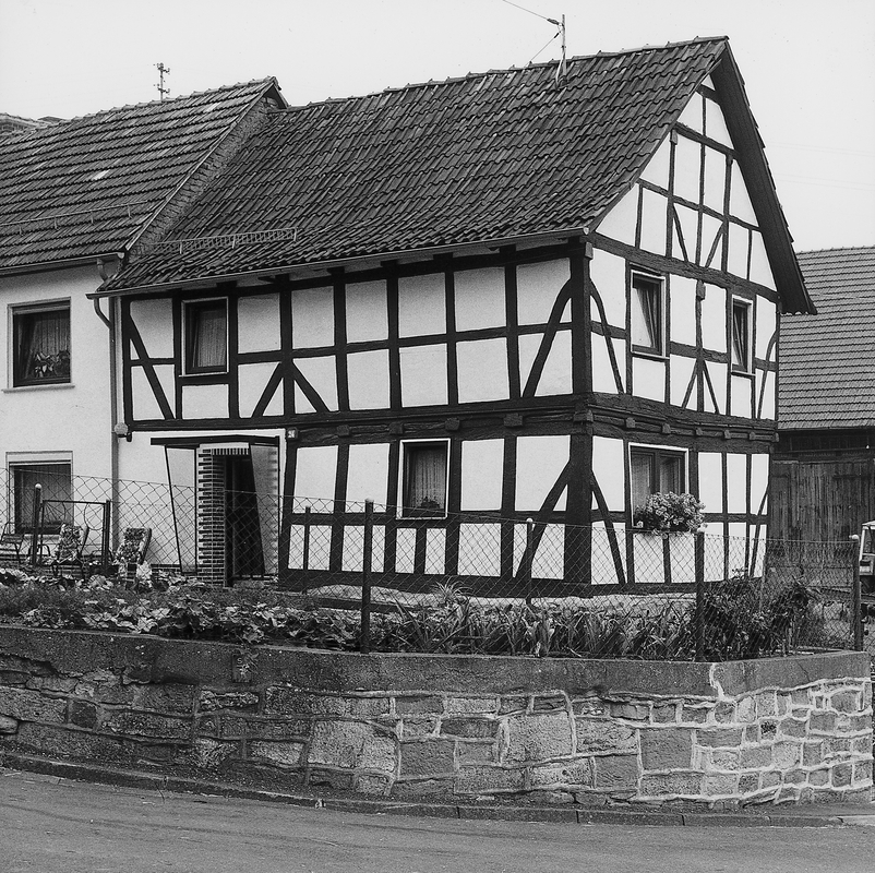 Giebelständiges Wohnhaus aus der zweiten Hälfte des 17. Jhs. in konstruktivem Fachwerkgefüge mit 3/4-Streben und Brustriegeln an den Eckständern.